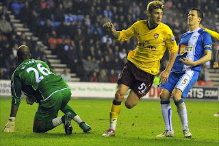 Arsenal İngiltere Premier Ligi 19.maçında Wigan deplasmanında çıkıyor.Dün Manchester United son dakika golüyle Birmingham deplasmandan beraberlik ile ayrılınca farklı bir skor ve maç fazlasıyla liderlik şansımız doğdu.Geçen yıl son 10 dakikada 3 gol yedeiğimiz ve 2-0'dan 3-2 yenildiğimiz Wigan ilginç bir takım.Fabregas sarı kart cezası yüzünden olmayacağı maçta 1 hafta dinlenen Arshavin'den çok şeyler bekliyorum.Fabregas'ın olmadığı maçlarda özellikle deplasmanlarda Nasri ve Arshavin çok etkili oluyor.Van Persie'nin gerçek forvet işleri yapmasına rağmen bu maçta gol de atacağını düşünüyorum.Chelsea galibiyetinden 2 gün sonra böyle bir deplasman riskli olabilir ama kazanmamız şart.Onları bu sezon carling Cup maçında Emirates'te 2-0 yenmiştik.Manchetser United mağlubiyetiyle bozulan dış saha serisini Wigan maçıyla başlatıp tekrar liderlik koltuğuna oturabiliriz.